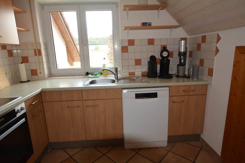 Die Küche der Ferienwohnung ist voll augestattet und bietet alles, was Sie für die Zubereitung Ihrer Lieblingsgerichte benötigen. Es gibt einen Herd mit Backofen, Kühlschrank, Geschirrspülmaschine, Wasserkocher und eine Kaffeemaschine.